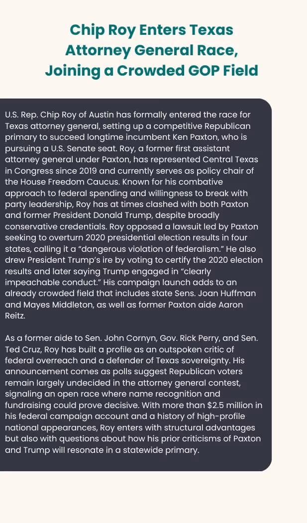 We’re refreshing the look and feel of our articles, so you may notice some formatting changes along the way. We still plan to bring you the top stories in Texas state and local politics to keep you informed and in the loop on what’s happening each week. Thanks for reading and being part of our community.